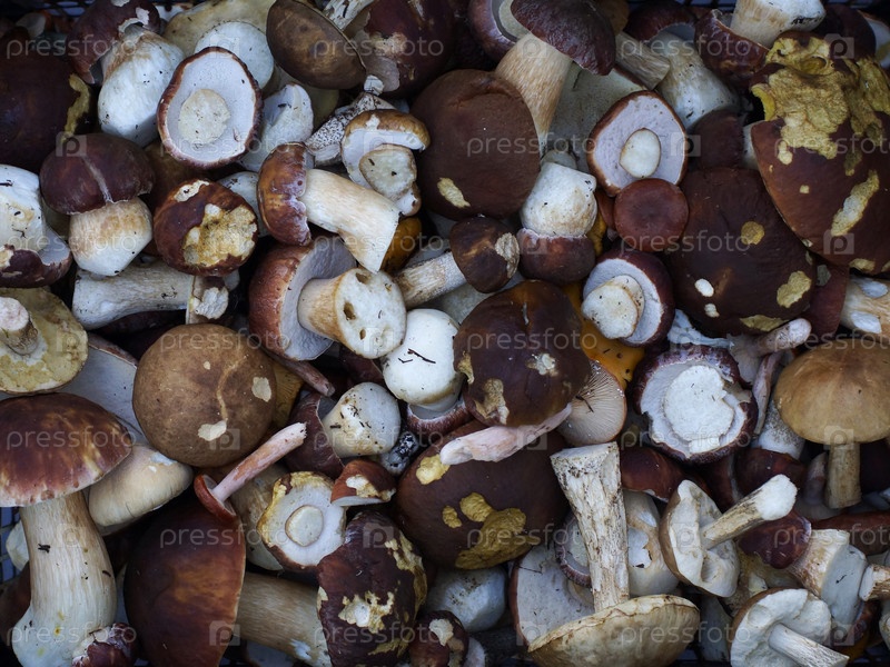 Урожай свежих лесных грибов: белые грибы сосновые и подосиновики