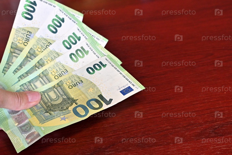 Подсчет банкнот на деревянном столе во время финансовой операции в офисной обстановке днем