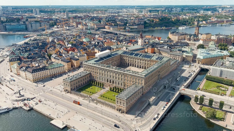 Стокгольм, Швеция. Королевский дворец в Стокгольме. Панорама города. Летний день, Aerial View