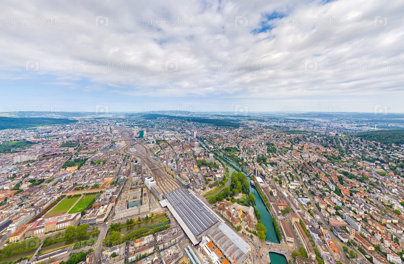 Цюрих, Швейцария Панорама города в пасмурную погоду Летний день Вид с воздуха