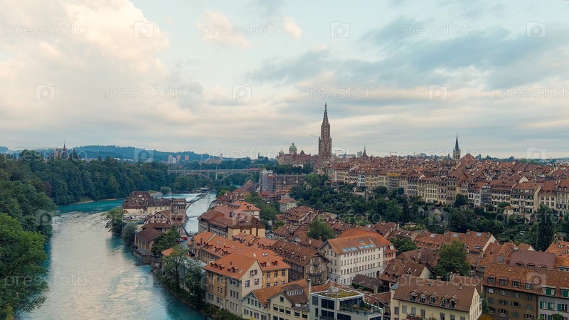 Берн, Швейцария.Бернский собор.Панорама города с видом на исторический центр.Летнее утро, Aerial View