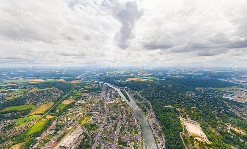 Намур, Бельгия.Панорама города.Летний день, облачная погода.Вид с воздуха
