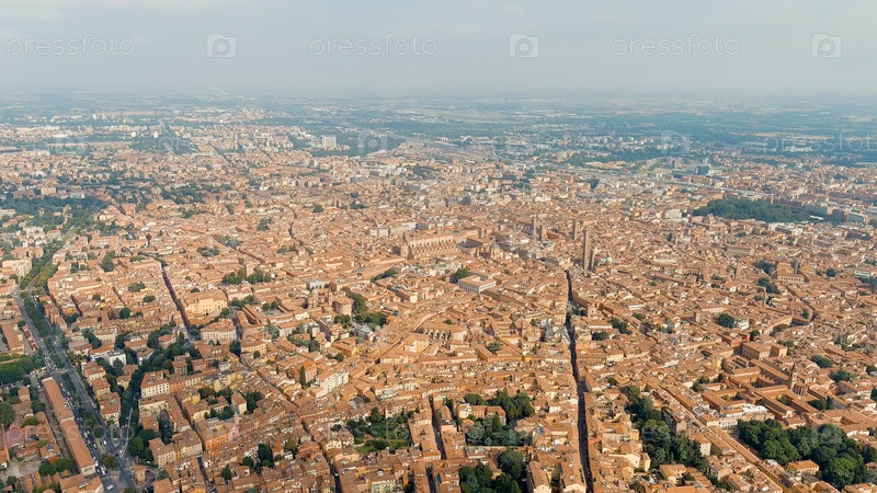 Болонья, ИталияСтарый городПанорамный вид на городЛетом Aerial View