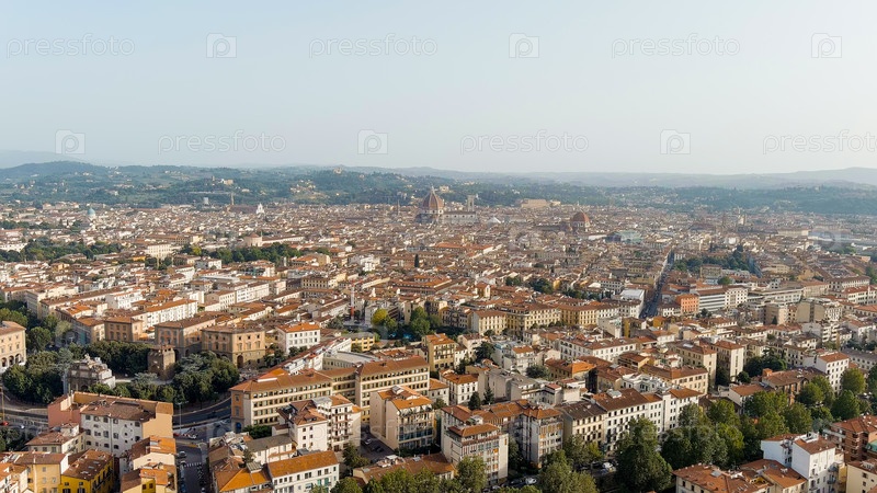 Флоренция, Италия. собор Санта-Мария-дель-Фиоре. панорамный вид на город. лето. вечернее воздушное наблюдение