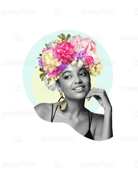 Абстрактный коллаж молодой африканской женщины с цветами на голове