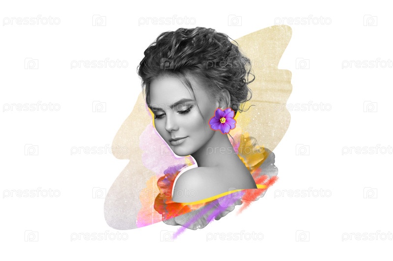 Абстрактный художественный коллаж молодой красивой женщины с цветами