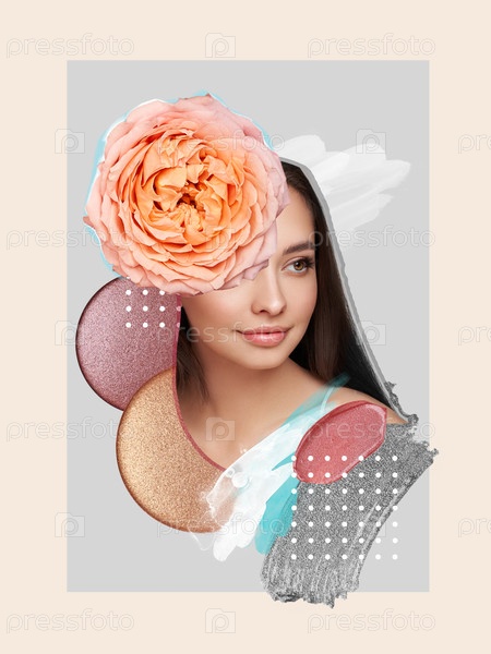 Портрет молодой красивой женщины в виде модного коллажа