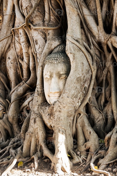 Каменная голова Будды в храме Wat Prha A Mahathat Temple