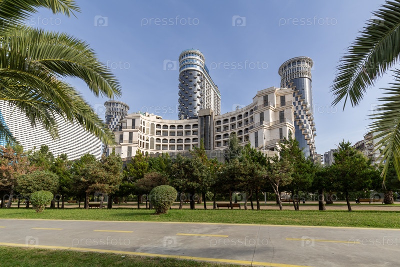 Вид на высокие современные здания в курортном городе Батуми, Грузия