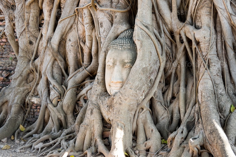 Каменная голова Будды в храме Wat Prha A Mahathat Temple
