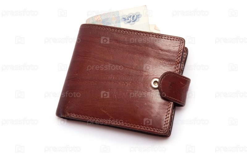 Мужской кожаный бумажник на белом фоне