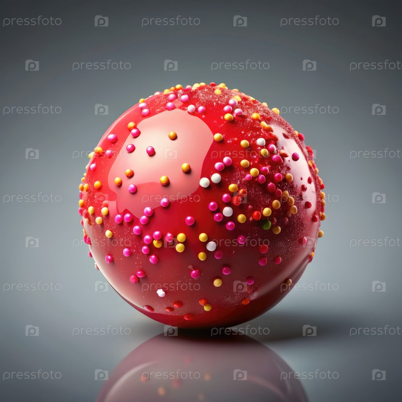 Круглые конфеты, покрытые красочными брызгами на стандартном масштабе в студийной обстановке