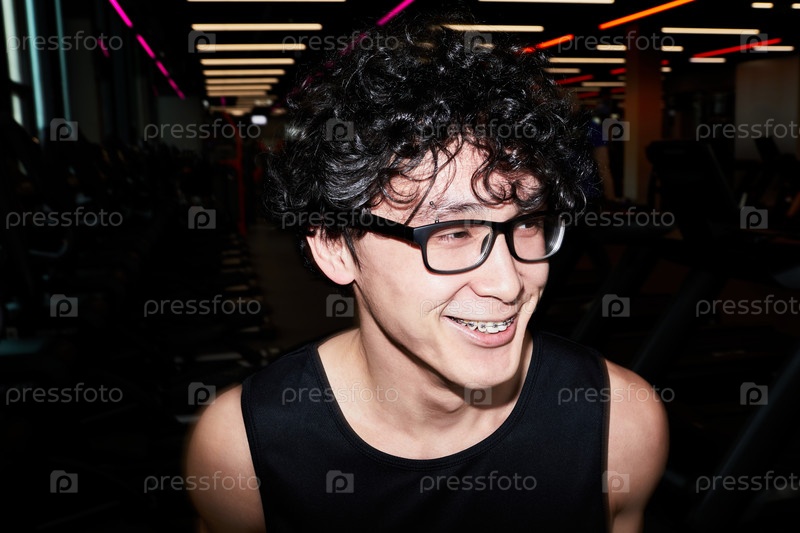 Подросток улыбается после тренировки в тренажерном зале для продвижения фитнеса