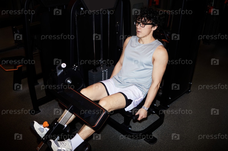 Мужчина-взрослый тренируется на машине для расширения ног в фитнес-гимназии