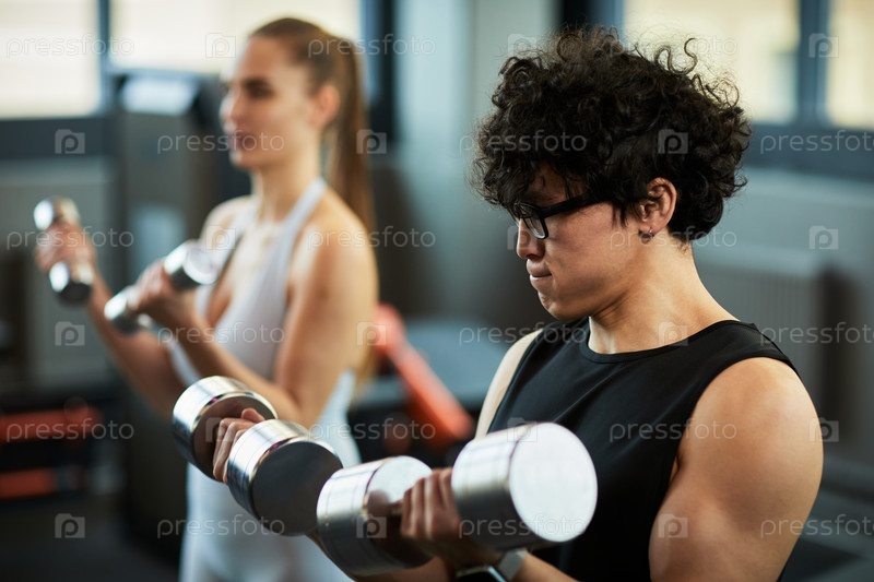 Женщины-взрослые поднимают гантели во время силовых тренировок в спортзале
