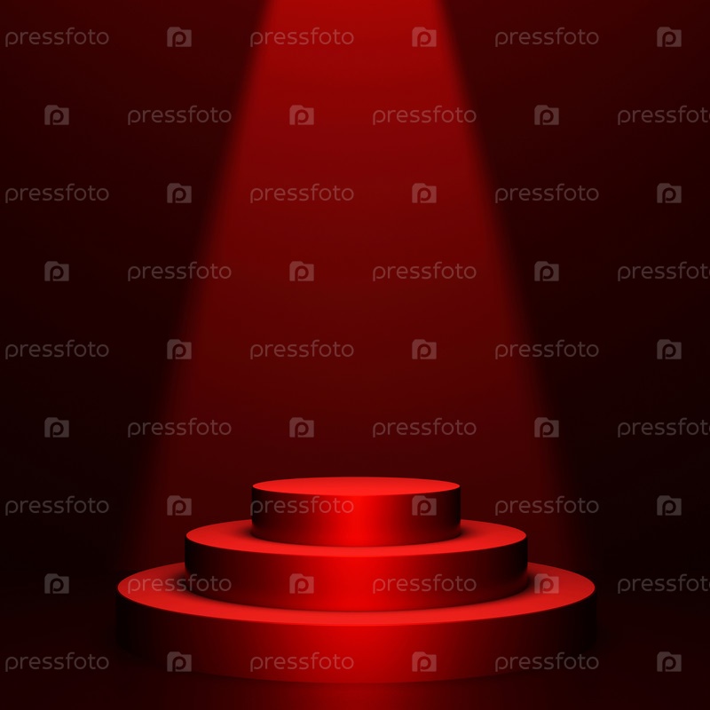 Круглый подиум на красном фоне с объемным освещением. 3D-рендеринг