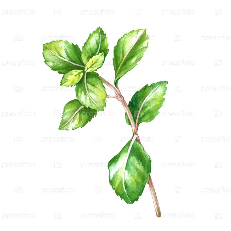 Ручно нарисованные ветви свежей мяты на изолированном фоне. акварельная иллюстрация