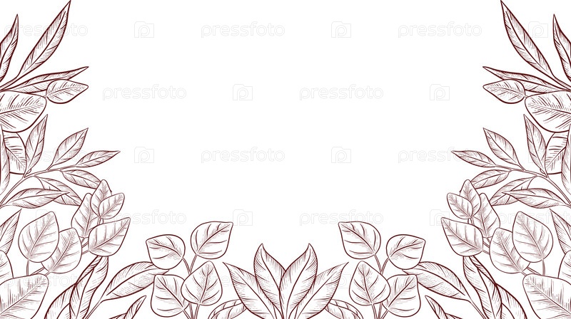 Подробный черно-белый рисунок в стиле гравировки эвкалипта и диких цветов, демонстрирующий подробные стебли, листья и структуры цветов. рамы и декоративные элементы для приглашений и упаковки