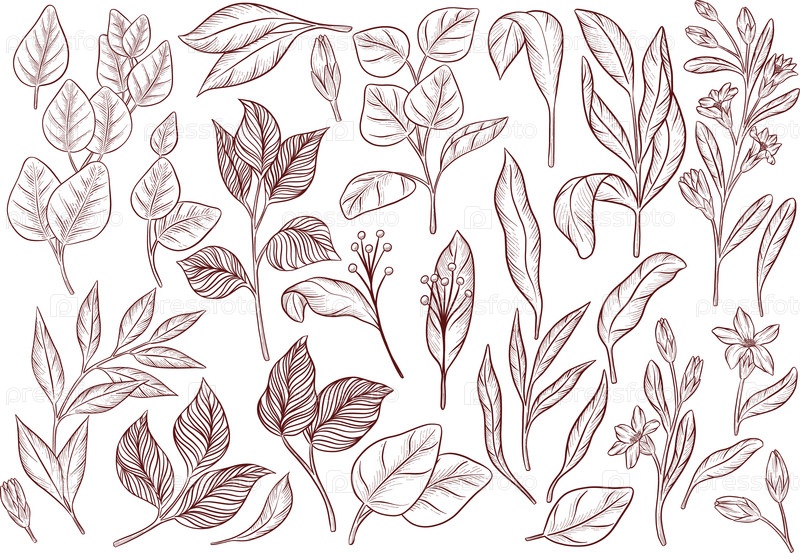 Подробный черно-белый рисунок в стиле гравировки эвкалипта и диких цветов, демонстрирующий подробные стебли, листья и структуры цветов. рамы и декоративные элементы для приглашений и упаковки
