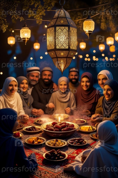 AI Generative Традиционный семейный ужин ифтар сухур для празднования мусульманского исламского праздника Рамадан