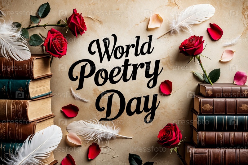 Поздравительная открытка с международным праздником Всемирный день поэзии с чернилами и ручкой AI Generative