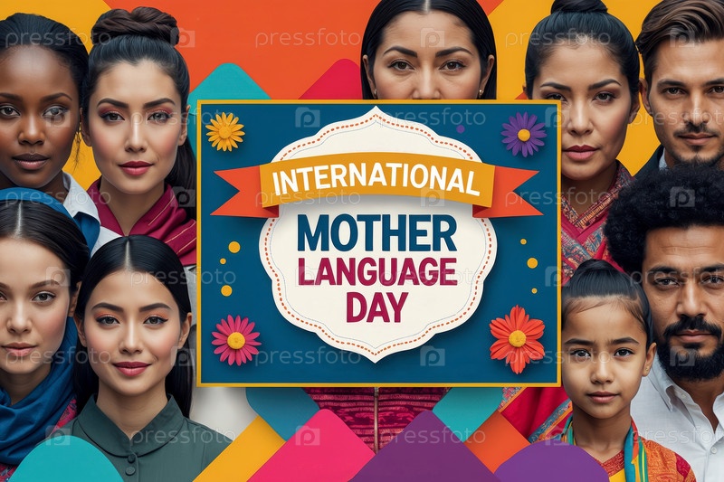 AI Generative Международный день родного языка поздравительная карточка, люди говорят разные речи и идиома