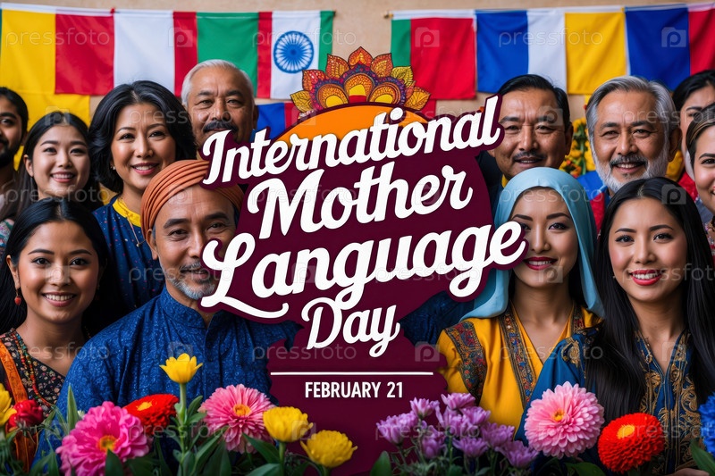 AI Generative Международный день родного языка поздравительная карточка, люди говорят разные речи и идиома