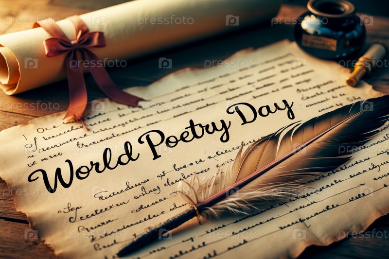 Поздравительная открытка с международным праздником Всемирный день поэзии с чернилами и ручкой AI Generative