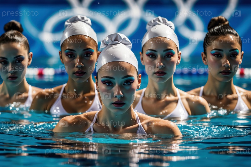 AI Generative Women Synchronized Swimming Team Танцы в бассейне, Летние Олимпийские игры Соревнования