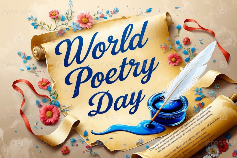 Поздравительная открытка с международным праздником Всемирный день поэзии с чернилами и ручкой AI Generative