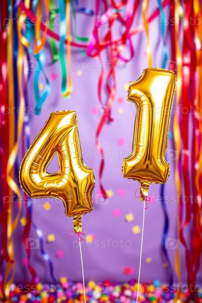 Гелиевый день рождения шарик формы номер сорок один, золотые буквы фигура 41 праздник праздничный фон декор