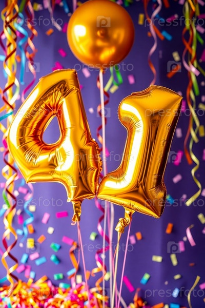 Гелиевый день рождения шарик формы номер сорок один, золотые буквы фигура 41 праздник праздничный фон декор