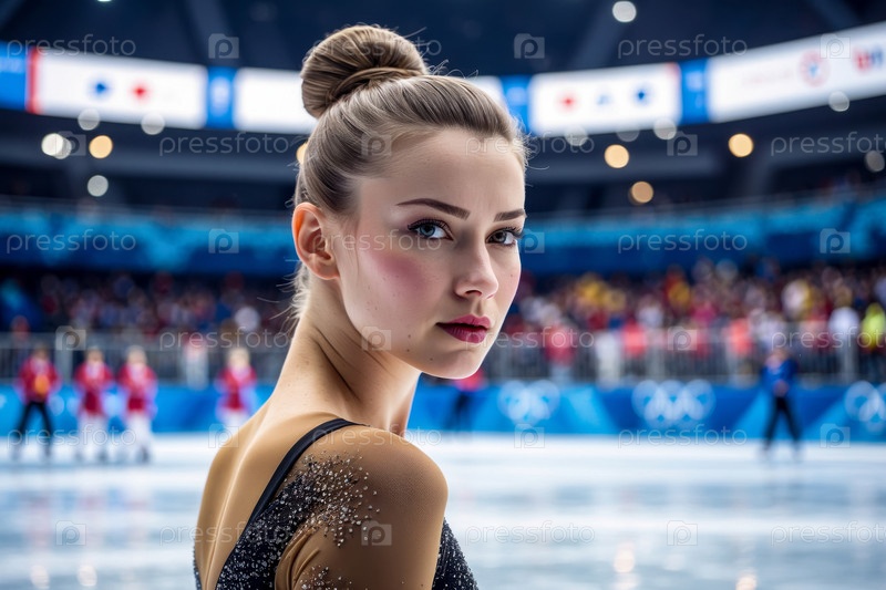 AI Generative Женщина-кейтер катается на коньках, зимние Олимпийские игры соревнования по фигурному катанию