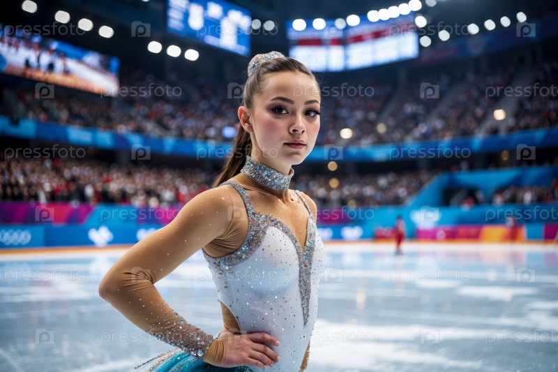 AI Generative Женщина-кейтер катается на коньках, зимние Олимпийские игры соревнования по фигурному катанию