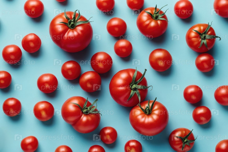 AI Generative Flat lay pattern of ripe tomato vegetable, top view on summer органический свежий фон