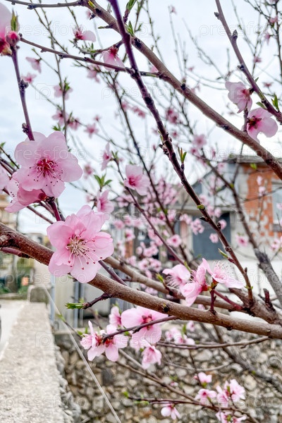 Вишневое дерево цветет деликатное красивое розовое японское сакура цветет весной вблизи