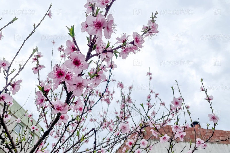 Вишневое дерево цветет деликатное красивое розовое японское сакура цветет весной вблизи