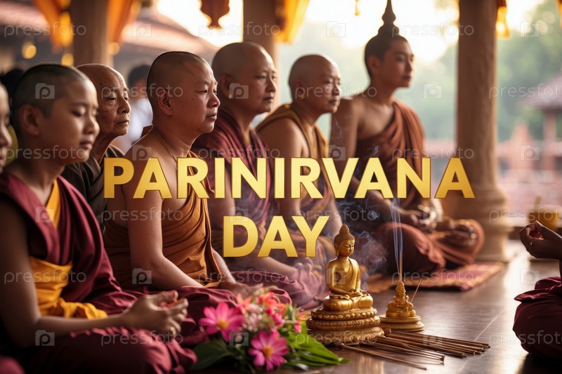 Генеративная открытка Поздравления с буддийским праздником День Паринирваны в честь Будды, достигшего полной нирваны AI
