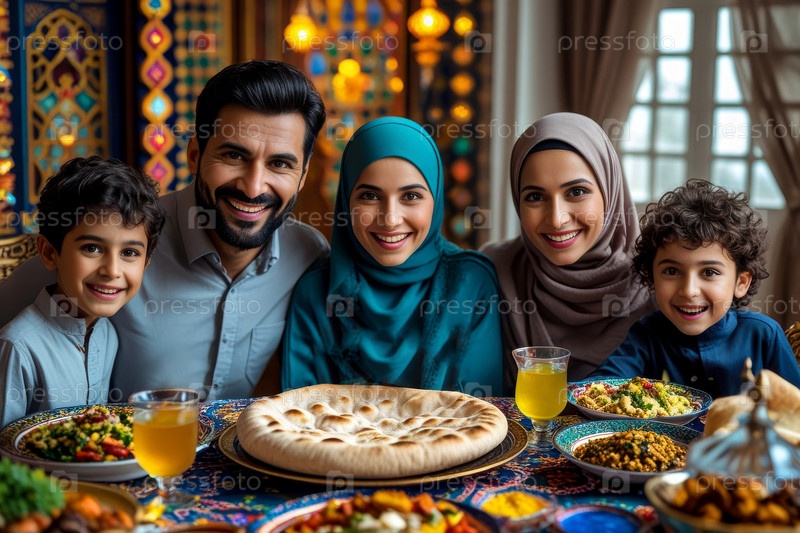 AI Generative Традиционный семейный ужин ифтар сухур для празднования мусульманского исламского праздника Рамадан