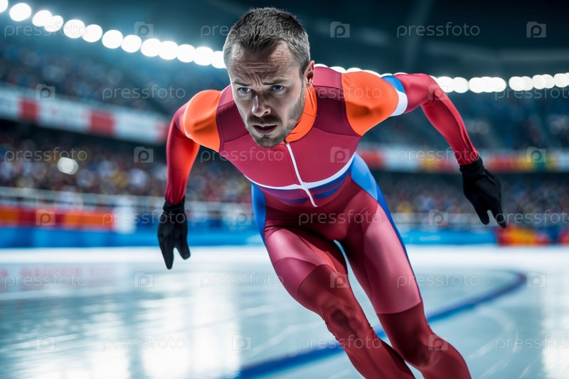 Зимние Олимпийские игры соревнования по короткому треку, мужской спортсмен фигурист кататься на коньках On Ice Skating Rink AI Generative