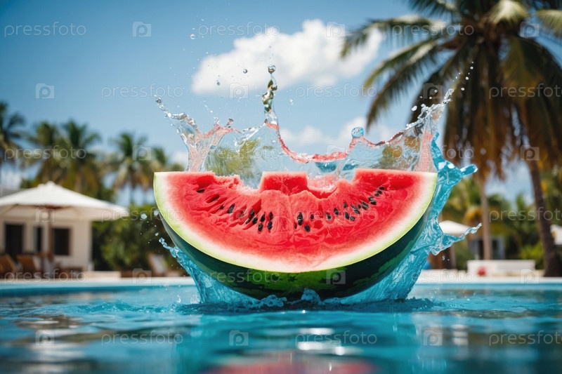 Экзотические фрукты капуста в распылении воды летом бассейн праздничный фон AI Generative
