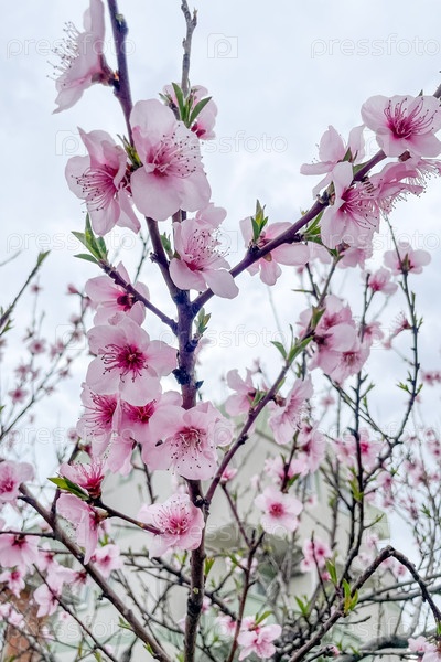 Вишневое дерево цветет деликатное красивое розовое японское сакура цветет весной вблизи