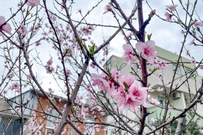 Вишневое дерево цветет деликатное красивое розовое японское сакура цветет весной вблизи