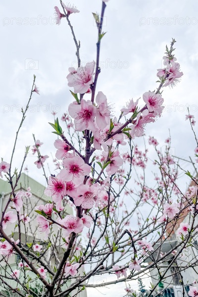Вишневое дерево цветет деликатное красивое розовое японское сакура цветет весной вблизи