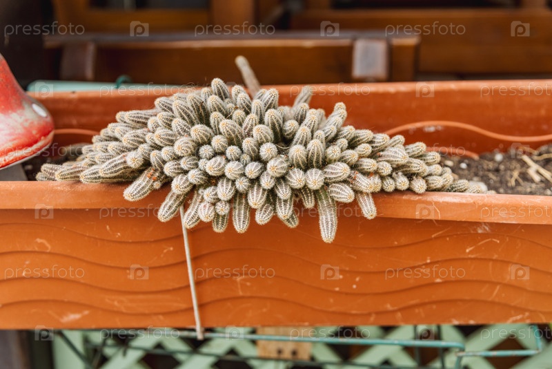Домашнее растение зеленый кактус в горшке Echinopsis Chamaecereus рост на огороде наружной