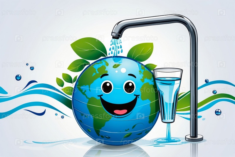 Генеративная ИИ Планета Земля пьет жидкость, иллюстрация к празднику защиты экологических ресурсов Всемирного дня воды
