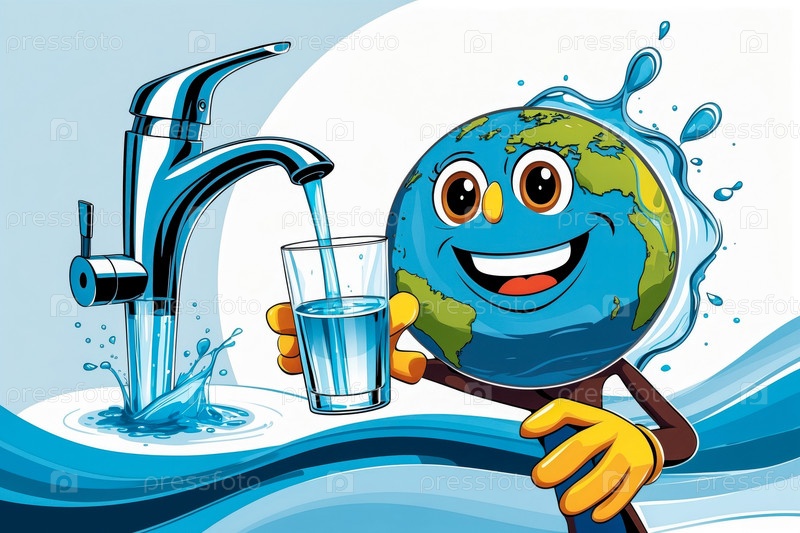 Генеративная ИИ Планета Земля пьет жидкость, иллюстрация к празднику защиты экологических ресурсов Всемирного дня воды