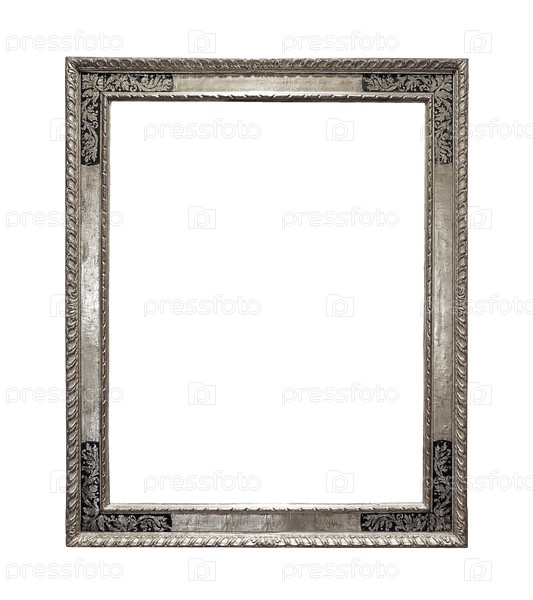 Серебряная рама для картин, зеркал или фотографии изолированной на белом фоне, вырезка готова