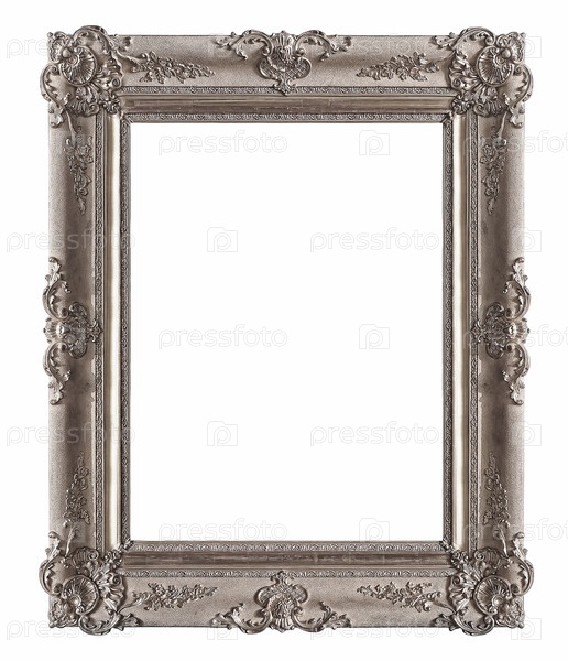 Серебряная рама для картин, зеркал или фотографии изолированной на белом фоне, вырезка готова