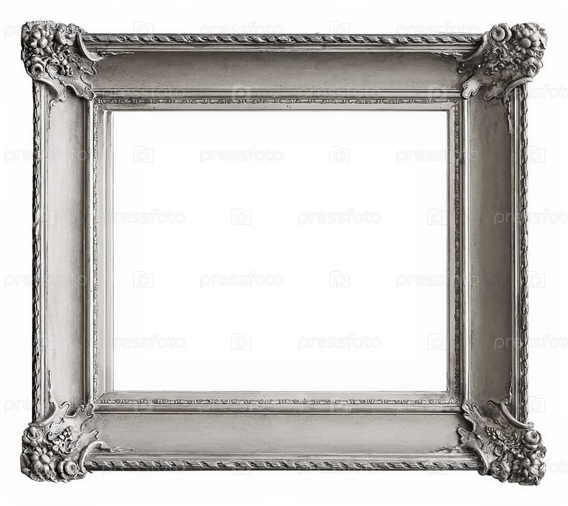 Серебряная рама для картин, зеркал или фотографии изолированной на белом фоне, вырезка готова